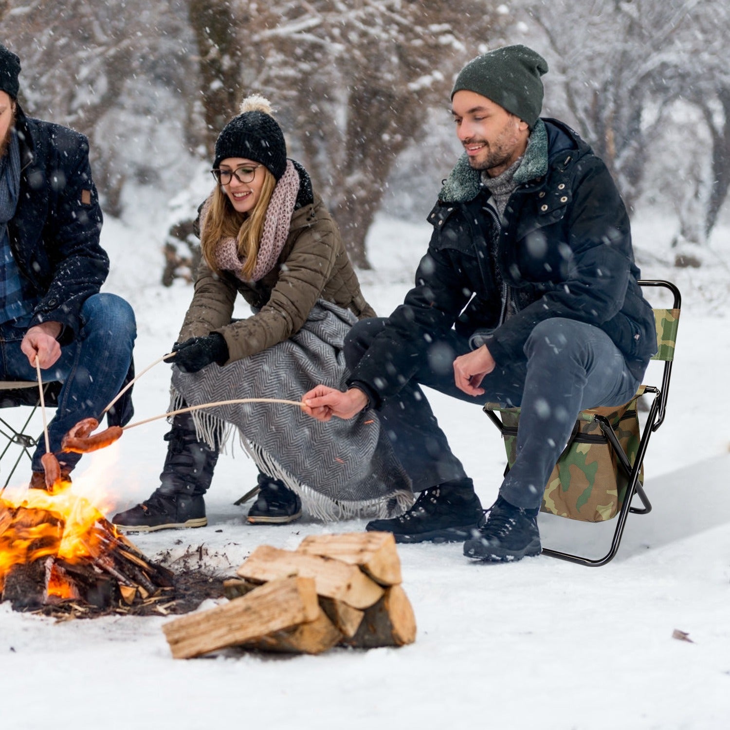 Foldable Fishing Chair With Backrest Built-In Cooler Bag